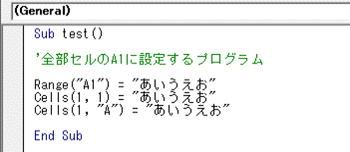 Cells(1,2) ※「B1」セルを指す(行数が「1」、列が「2」※B列)