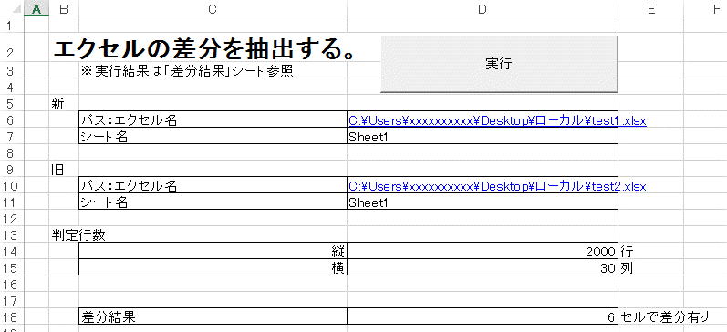 '*** 指定した2つのエクセル(シート)の差分を出す
